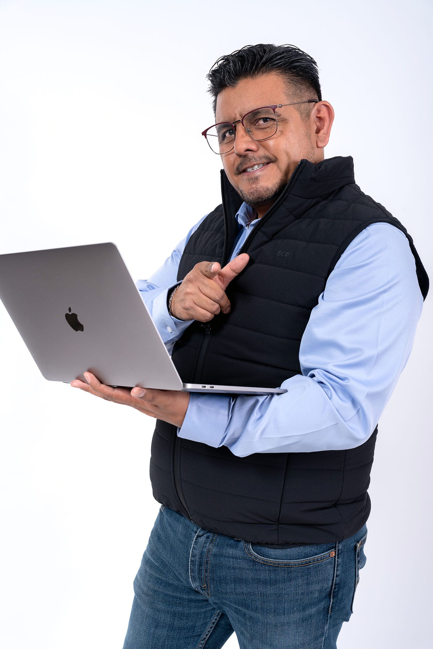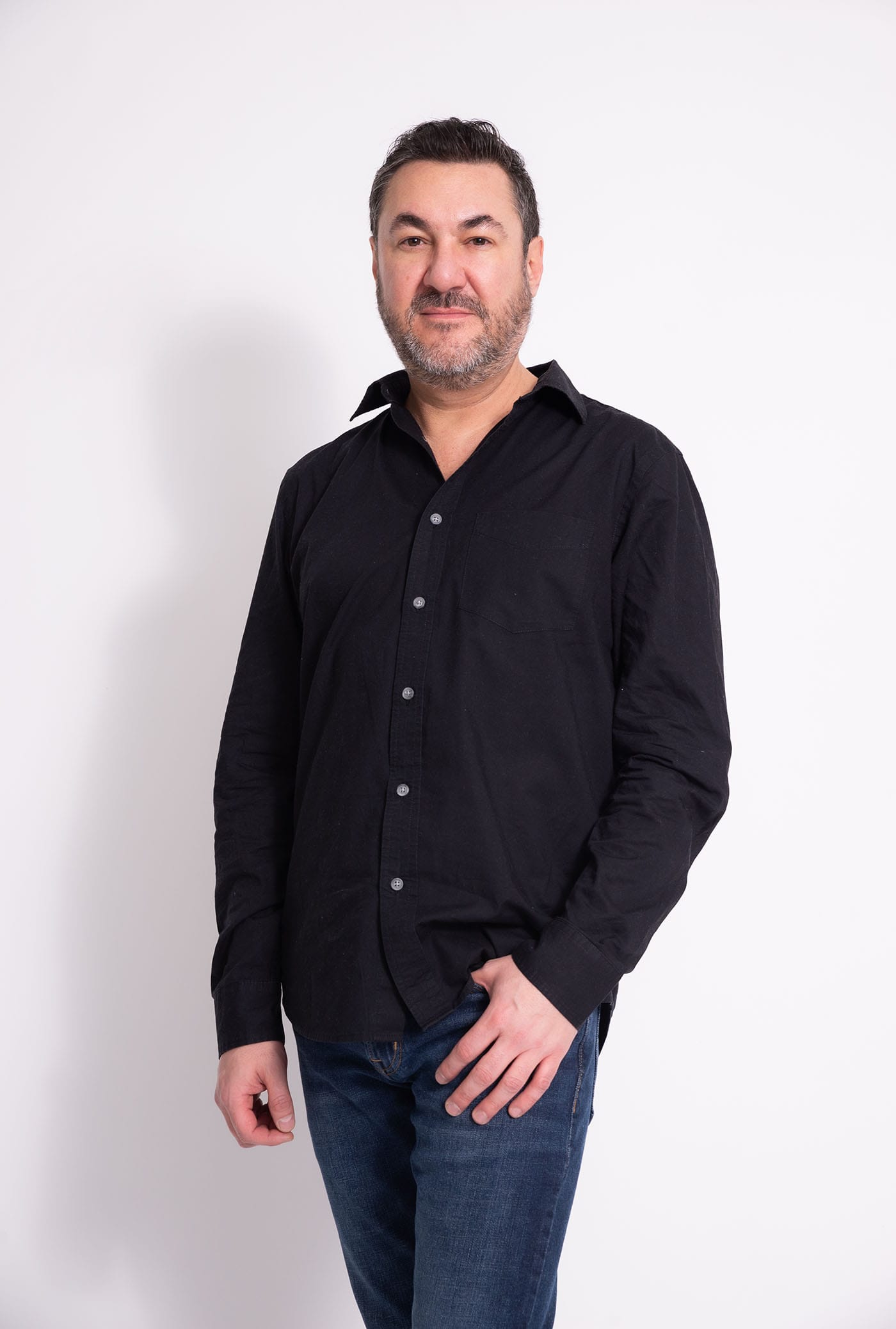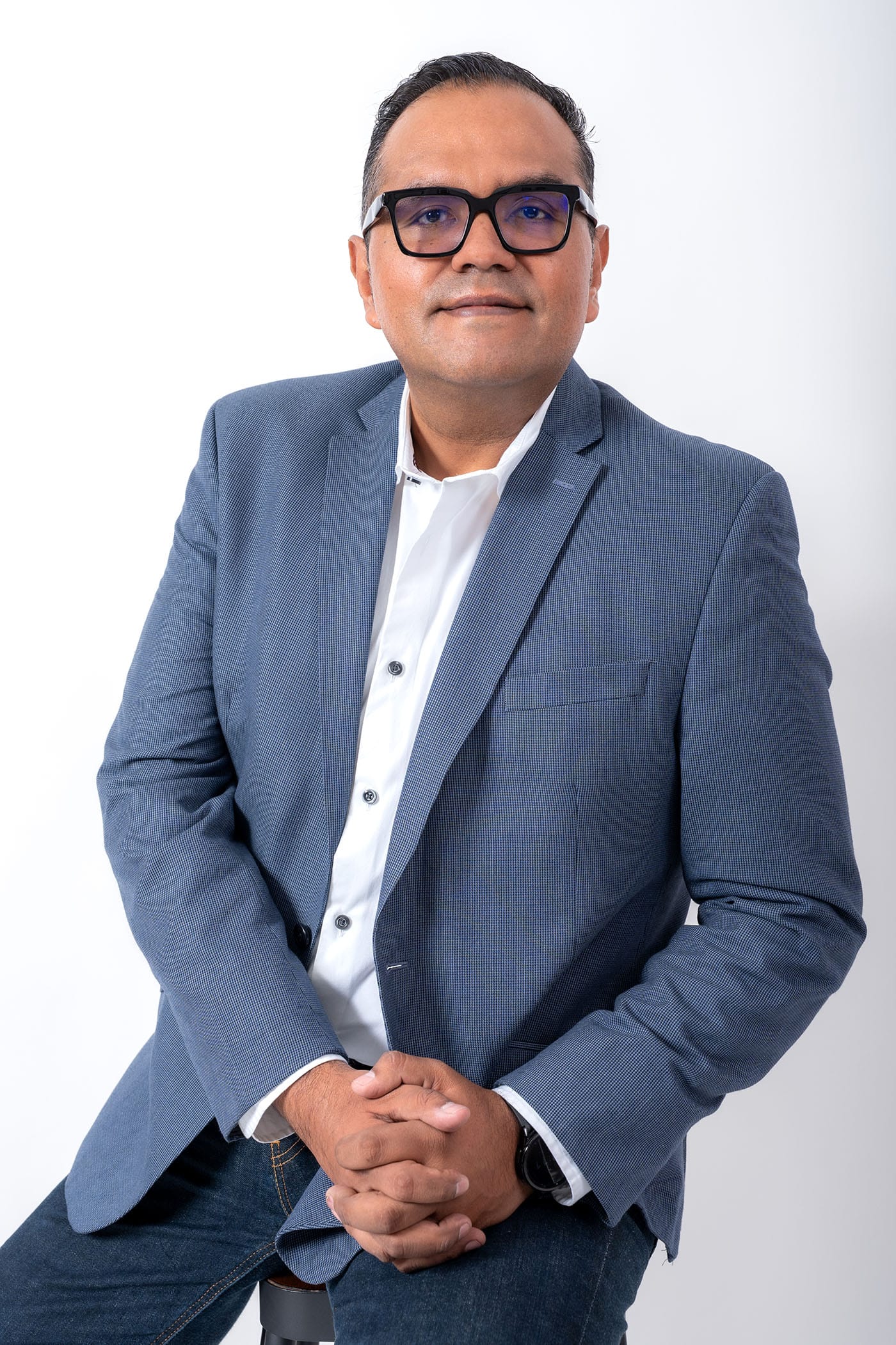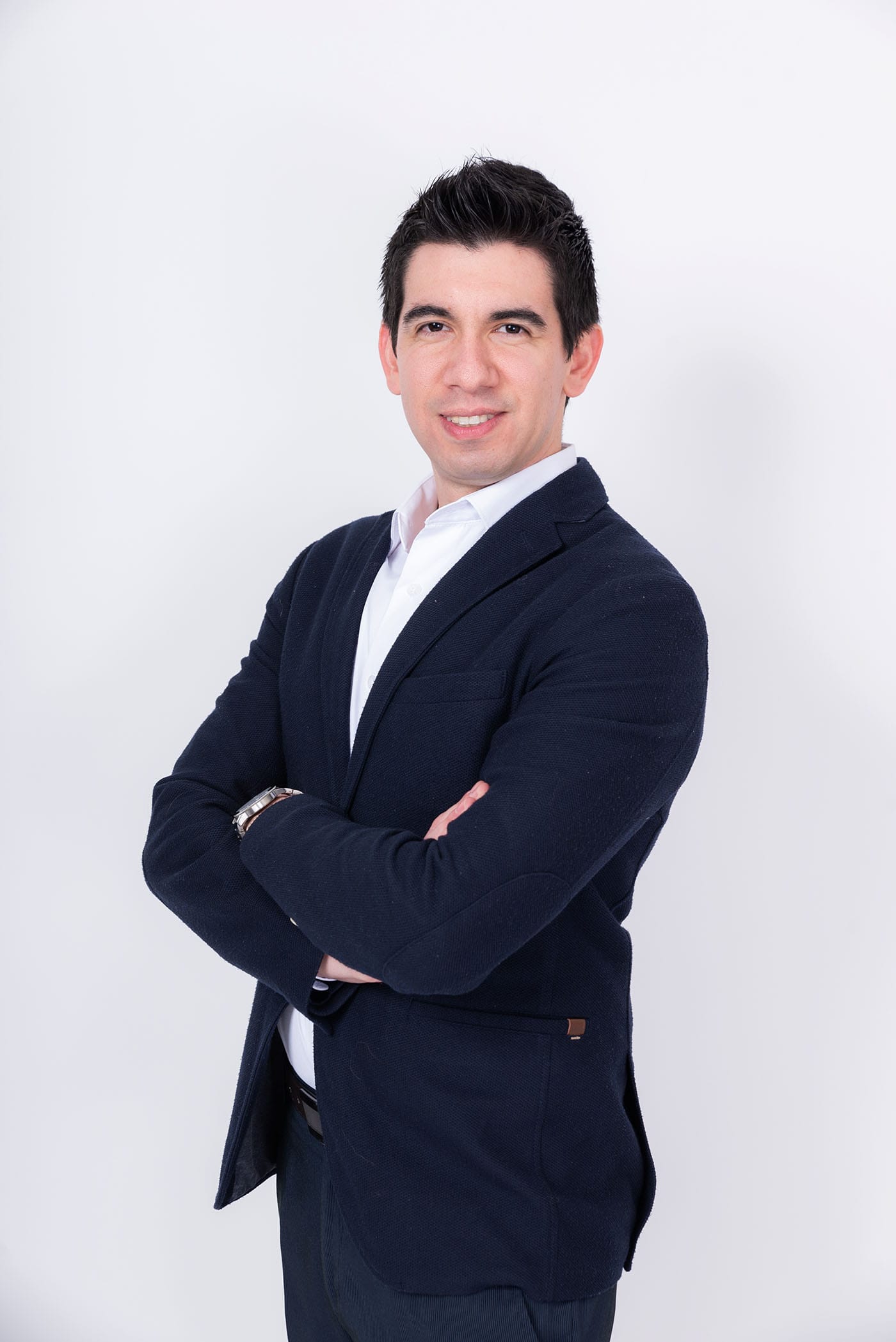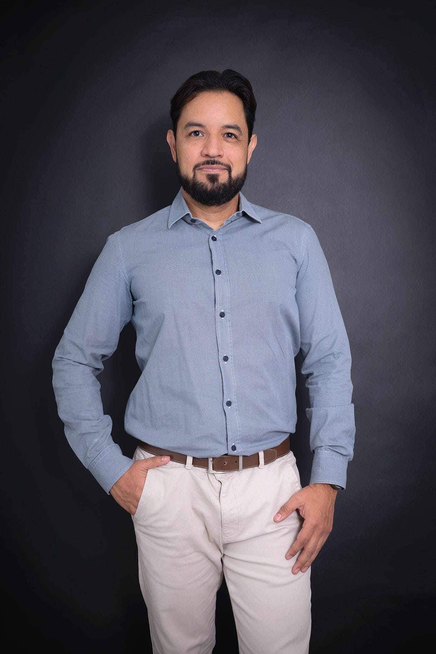 Fotografía profesional de hombre en estudio para perfil corporativo