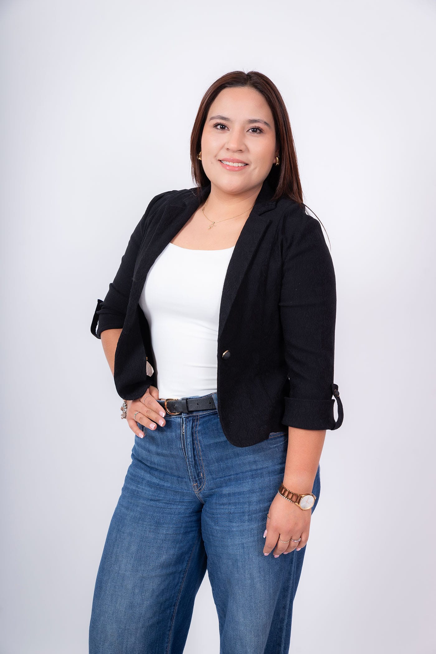 Foto profesional femenino para LinkedIn realizada en estudio
