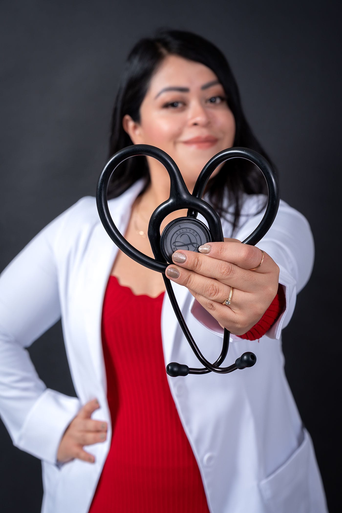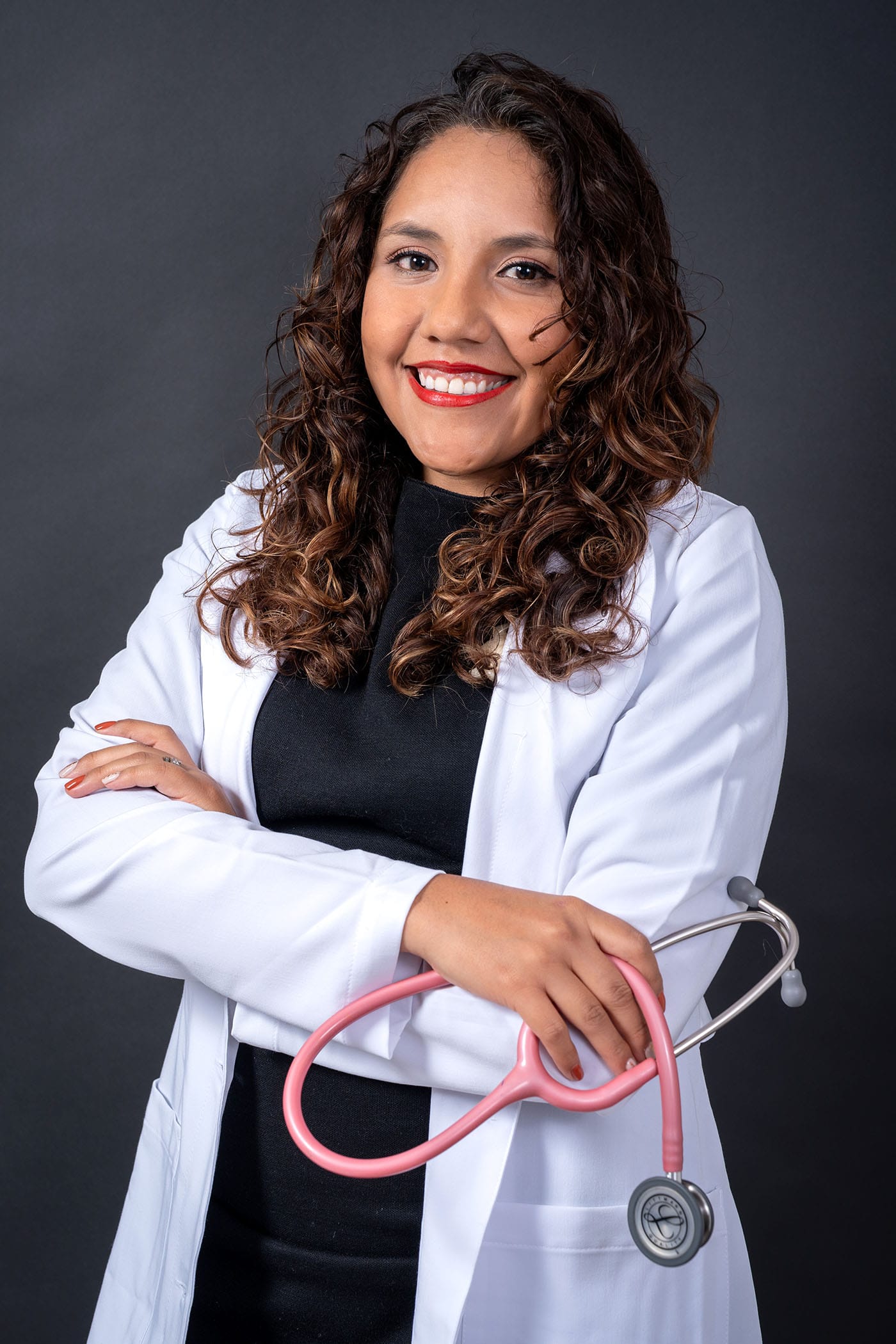 Fotografía corporativa de médica en estudio con iluminación profesional